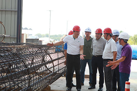 27日下午,沈蘭冠一行來到杭州灣大橋北接線(二期)項目建設(shè)工地,看望冒著高溫天氣努力推進灣北二期重點工程建設(shè)的一線施工人員。每到一處工地,沈蘭冠董事長都與施工單位負責(zé)人進行溝通交流,深入了解項目進展情況,仔細查看項目臨建設(shè)施和員工生產(chǎn)生活區(qū)域,沈蘭冠董事長要求各建設(shè)單位切實做好高溫期間工地安全生產(chǎn)工作和一線員工生活保障工作,確保項目安全、平穩(wěn)、有序推進。