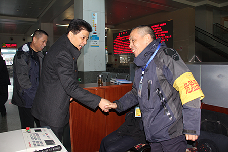 2月8日(大年初一),集團公司董事長沈蘭冠、總經(jīng)理李云鴻、副總經(jīng)理杜增樑一行先后來到高速管理公司、國鴻汽運公司、公交公司、公共自行車公司,親切看望春節(jié)期間堅守在工作崗位的交通營運一線職工,感謝他們?yōu)楸U蠌V大市民節(jié)日正常出行付出的辛勤勞動,并向他們致以節(jié)日的問候和新年的祝福。
